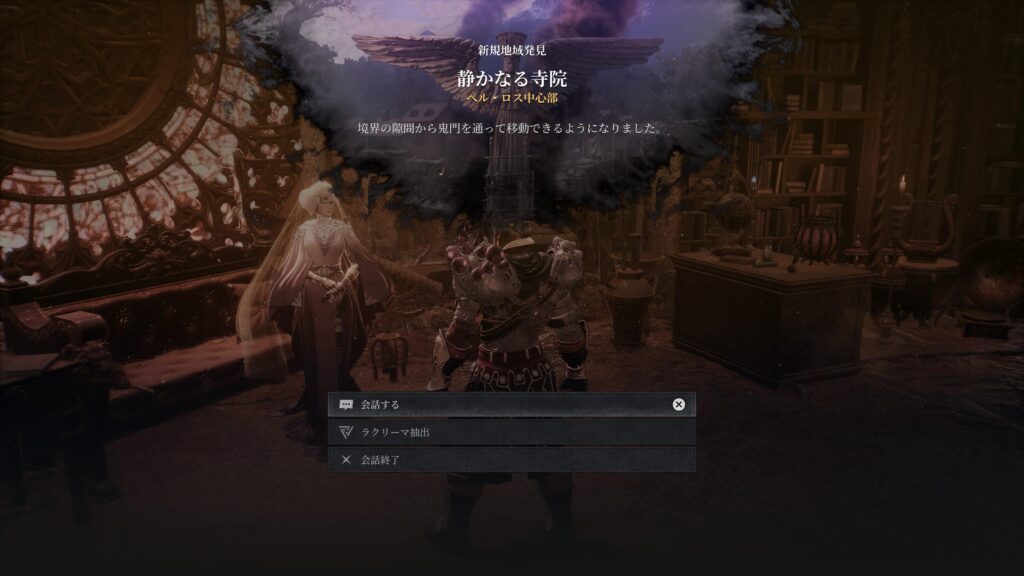 パレミオン攻略後にオクサーヌに話しかけると、エリア:静かなる寺院 と サブミッションの業師の箱が解放されます。