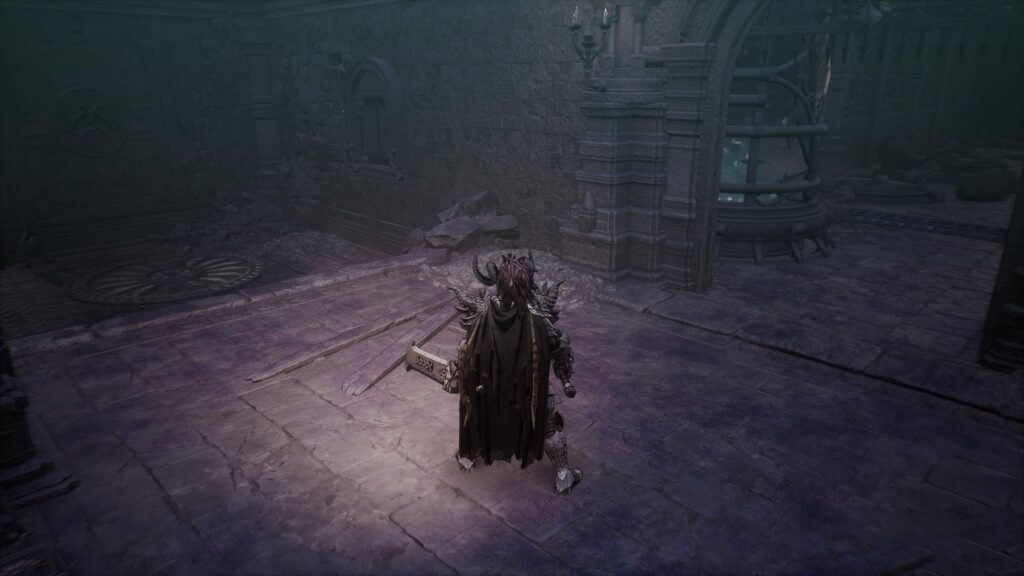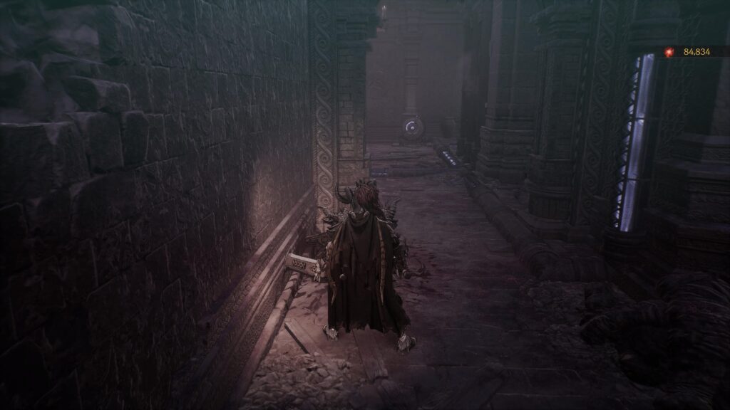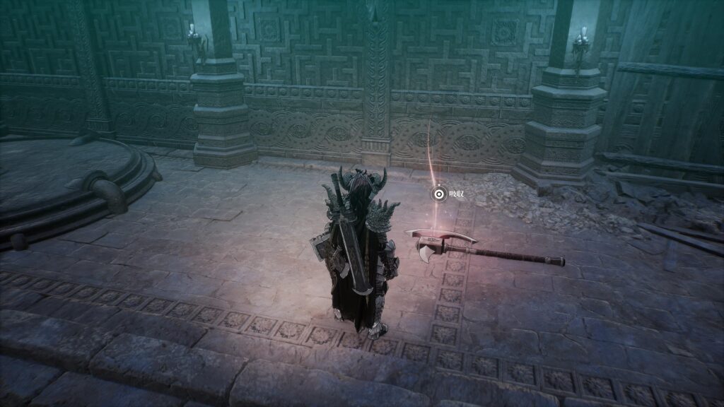 一番初めのレーザーの部屋を抜けると、左と正面に進む道があります。最終的にはどちらの道も繋がっているのですが、左方向にはアイテム:鬼気の宿る聖物が落ちています。また、正面方向には竜鱗の書があります。
